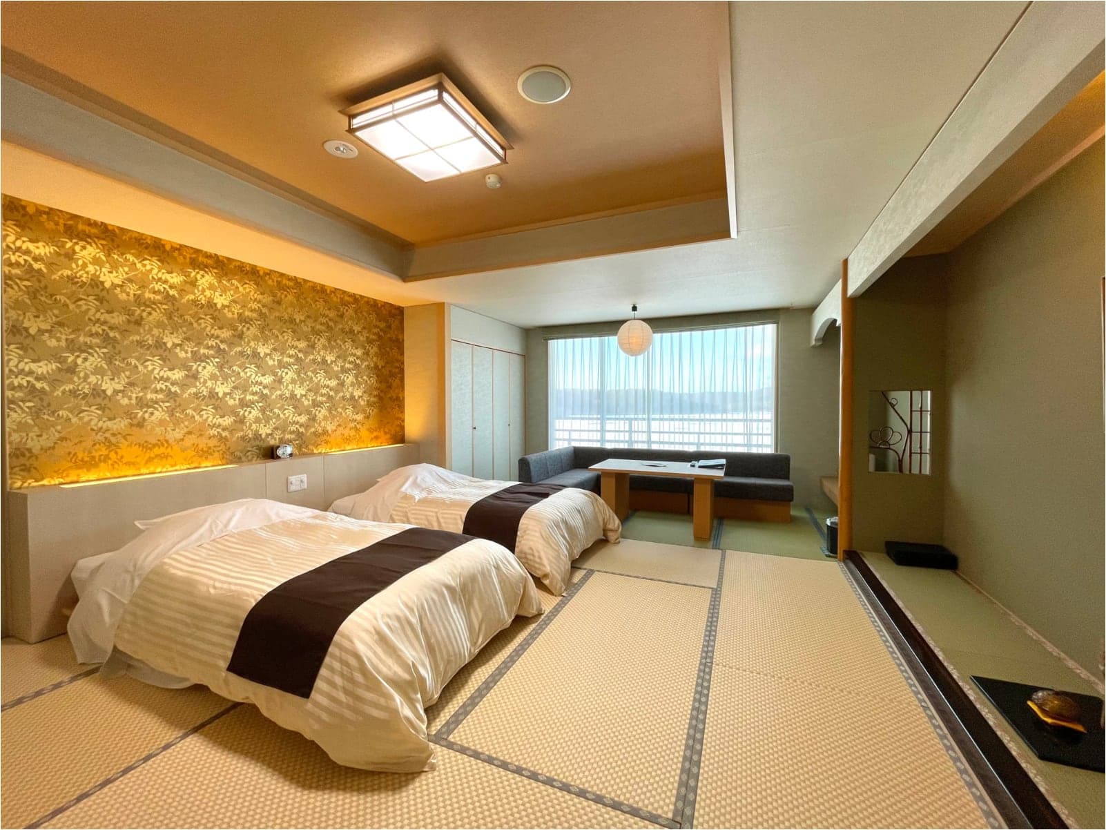北海道らしい広々とした間取りの客室は、靴を脱いでのびのびとおくつろぎいただけます。テラスからは、網走湖を一望できます。旅行スタイルに合わせてお部屋をお選びいただけます。